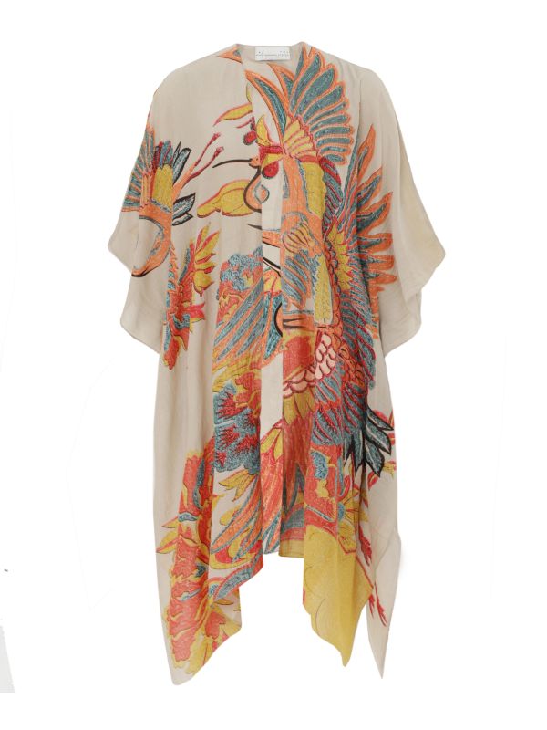 The Crane Throwover is a kimono-style drape from One Hundred Stars. Cut for an easy, open-front fit, it features wide kimono sleeves and a flowing asymmetric hem that skims the body. An oversized crane motif covers the surface for a decorative finish, providing visual interest whether worn over tailoring or casual separates. The lightweight modal and cupro blend gives a soft, fluid drape and a breathable handle. Its open silhouette makes it simple to layer, while the generous cut ensures comfortable coverage. Pair with slim Pants or a dress to vary the look.