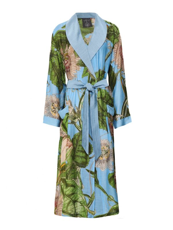 Upgrade your loungewear with the One Hundred Stars Kew Passion Flower gown. This lightweight gown falls to an elegant long length and features a fold over collar, self-tie waist belt and front patch pockets. Perfect for layering over your favourite pyjamas or teaming with a basic tee and jeans for a statement everyday look, this botanical print gown has been designed in collaboration with the Kew Royal Botanic Gardens.