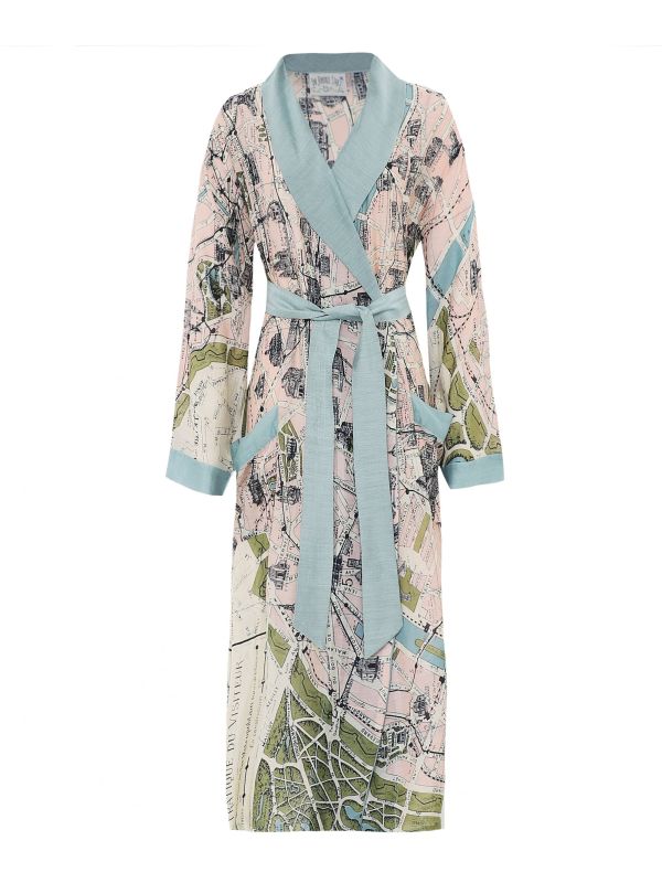 The One Hundred Stars Paris Map gown makes a luxurious house coat or can be layered as a chic addition to any outfit. This lightweight gown has am elegant full length silhouette and features a self-tie waist belt for a flattering fit. It's complete with a fold over collar, two patch pockets at the front and a gorgeous Paris map print for a chic finish. Wear with your favourite loungewear, or team with skinny jeans and a basic tee for an on-trend look.
