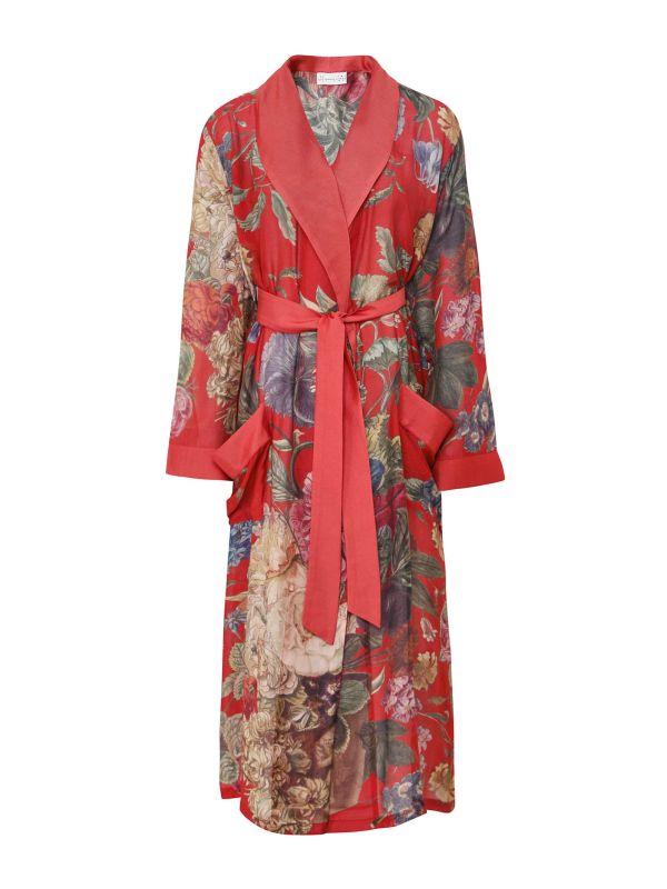 Introduce comfort and style to your nightwear collection with the Primula Berry Gown by One Hundred Stars. This beautifully designed piece features an intricate floral print, perfect for adding a touch of indulgence to your evenings. The gown showcases a soft wrap style with a belt, complemented by long sleeves for added coverage. Ideal for lounging or as a stylish gift, this piece embodies the brand's commitment to quality and elegant aesthetics.