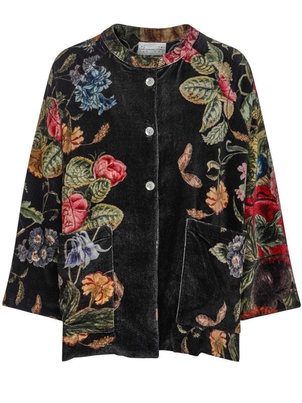 Elevate your look for the new season in the One Hundred Stars Primula Black Velvet Jacket. This supremely soft jacket is crafted from cotton velvet and features all-over blooms including primroses and auriculas in a vibrant colour palette. It's complete with a mandarin collar, 3/4 length sleeves, a button closure with mother of pearl buttons and front patch pockets. Style this One Hundred Stars jacket with your favourite cold-weather looks.