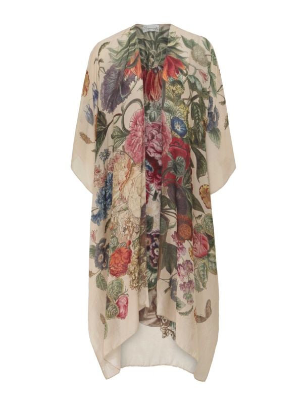Showcasing a vibrant and blooming bouquet of flowers, the Primula Stone Throwover by One Hundred Stars is a must-have for those who love detail. Crafted from the brand's beloved modal and cupro fabric, this One Hundred Stars throwover is soft and lightweight–the perfect cover-up. It has an open front, loose-fit sleeves and a flowing hem that falls to mid-length.