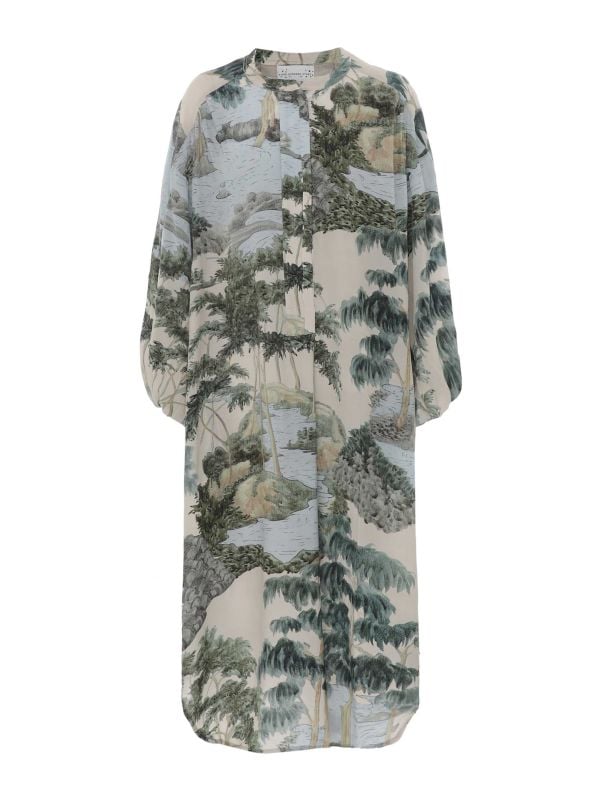 The elegant 3/4 sleeves add a touch of sophistication, while the midi length enhances its modern, feminine silhouette. Finished with the delicate Rivers and Trees print, this One Hundred Stars dress is ideal for those seeking refined yet relaxed elegance.