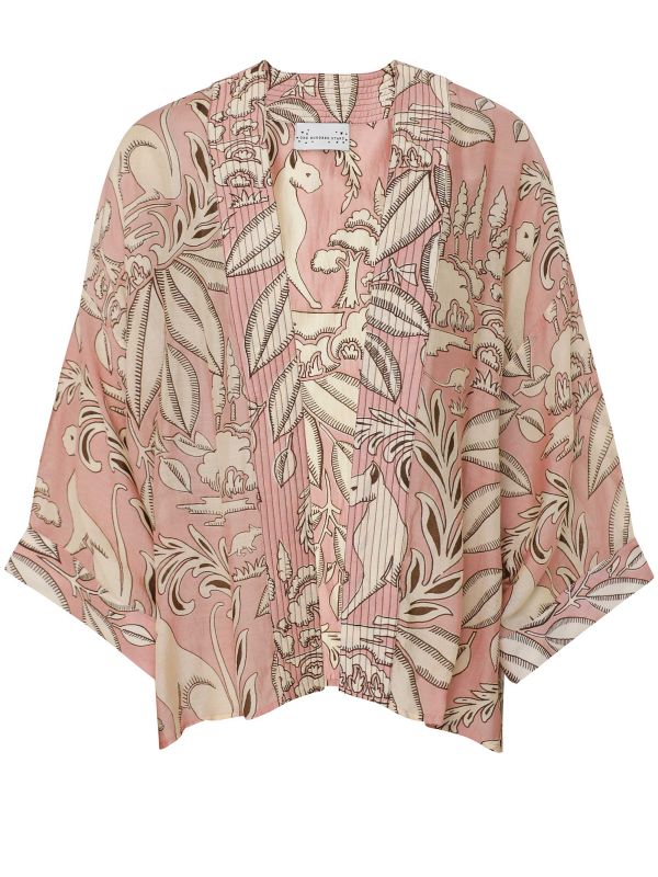 Whether worn as a lounging piece at home, a going-out jacket or layered over swimwear, the One Hundred Stars Sphinx Pink Kimono is a truly versatile piece.