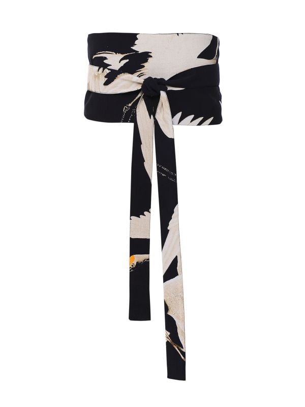 Lend a vintage touch to your outfits with the One Hundred Stars Stork Obi belt. Elegantly printed with an Art Deco-inspired stork design, the black belt can be easily teamed with a host of outfits to achieve a stunning hourglass silhouette.