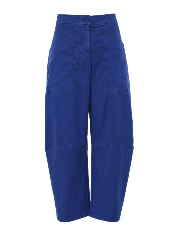 The OSKA 524/3383 Trousers feature the brand's signature barrel leg silhouette, providing a statement style that you can dress up or down. Cut from a cotton stretch fabric with a mini waffle texture and topstitch detailing, these trousers offer everyday comfort with a slight sporty look.