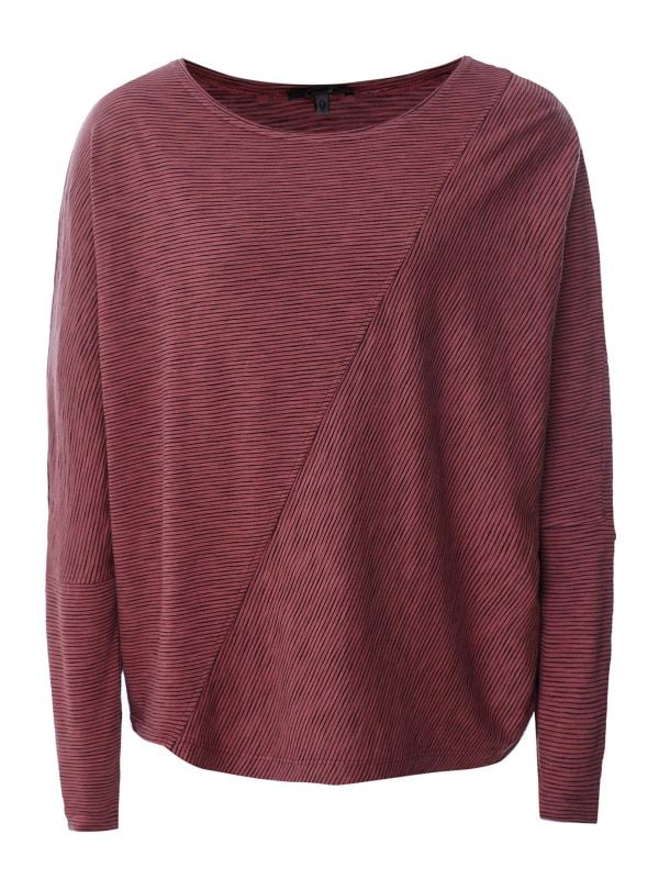 The OSKA Diagonal Stripe 523/4282 Top is cut from 100% cotton in a fine slub jersey. It features a soft round neckline, long sleeves and a diagonal panel seam for subtle structural interest. The relaxed silhouette sits neatly at the hip, making it an easy layering choice over skirts or trousers. Lightweight yet substantial, this piece holds its shape while offering comfortable everyday wear. Easy to style, it works well across seasonal wardrobes.