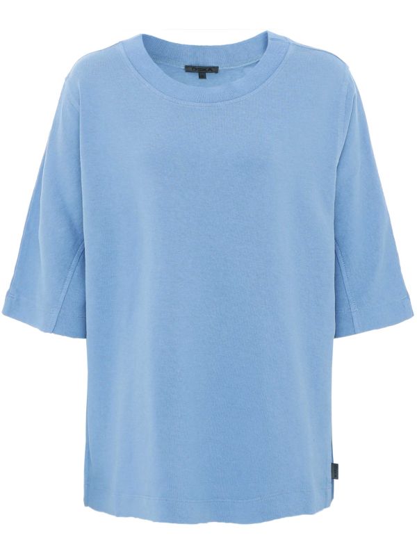 The OSKA 517 T-Shirt is a relaxed style cut from hemp and organic cotton jersey, perfect for warmer weather. This OSKA t-shirt features a round neckline, dropped shoulders, short sleeves and ribbed cuffs. It falls over the hips and is finished with curved dividing seams creating a casual, sporty look.