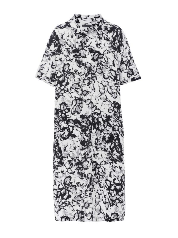A highlight for any collection, the OSKA 538/1309 Dress is a seasonal must-have. Cut from 100% linen, this OSKA midi dress is a shirt-style with a lapel collar, short sleeves and side seam pockets. The relaxed-fit, A-line silhouette is adorned with the label's two-tone "Garden" print, created in Austria using stencils.