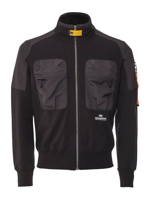 Inspired by military-issue clothing, the Parasweaters Donald sweatshirt is perfect for those off-duty days. Engineered with mixed fleece and matte finish fabrics, the sweatshirt will ensure superb comfort and warmth. Featuring a stand collar with two-way zip fastening, ribbed trims and PJS sleeve badge, whilst the large chest pockets add utilitarian functionality.