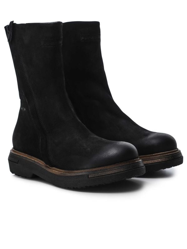 The Ariko Suede Ankle Boots by Patrizia Bonfanti are a mid-calf silhouette made in Italy. Sculpted from suede with a rounded toe and a smooth toe finish, it sits on a pronounced rubber sole with layered welt detailing and a textured tread for reliable grip. An inner Zipper fastening and rear pull tab make it easy to put on, while a small embossed logo at the heel provides subtle brand detail. Robust yet pared-back, the design is suited to everyday wear through cooler months.