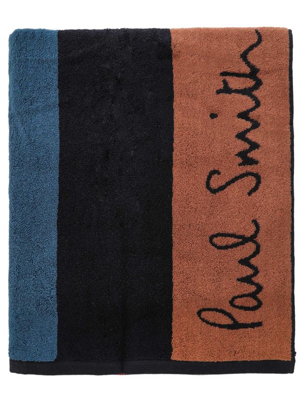 The Artist Stripe Cotton Towel by Paul Smith is a generously sized bath towel with bold vertical stripes and a jacquard signature on the border. Woven in a dense terry loop, it offers exceptional absorbency and a soft handle, while neatly bound edges add durability. Its graphic panels give a contemporary edge to everyday routine, whether used at home or by the pool. Finished with a compact fold for storage, this piece brings a distinctive luxury designer accent to daily care.