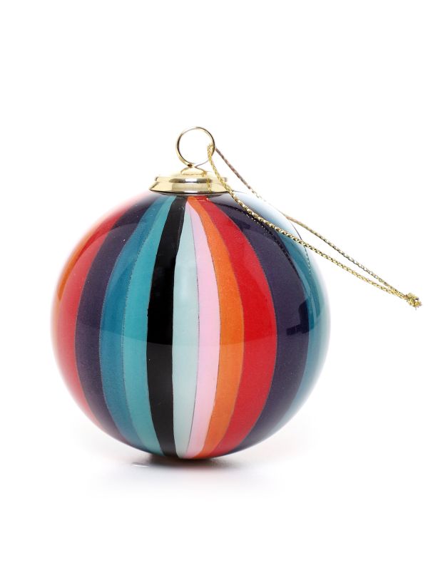 Adorn your Christmas tree in luxurious designer style with the Paul Smith Artist Stripe bauble. Beautifully hand painted onto traditional glass in the label's signature 'Artist Stripe' pattern, the bauble exudes the British label's famous charm. Presented in a black padded Paul Smith box, the bauble would make a great gifting idea this season.