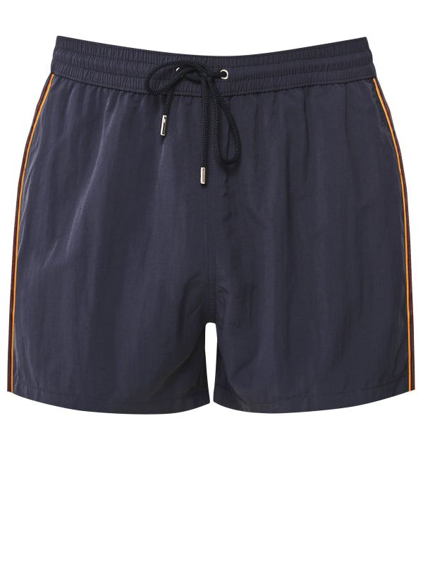 The Paul Smith Artist Stripe trim swim shorts are a perfect blend of sustainability, functionality, and style. Crafted from recycled polyamide, these shorts not only contribute to reducing environmental impact but also boast quick-dry fabric, ideal for a seamless transition from water to land. The elasticated drawstring waist ensures a comfortable and adjustable fit, while side pockets and a zip seat pocket offer practical storage options.