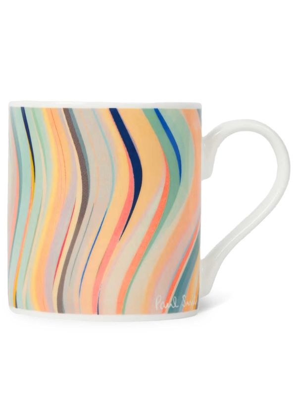 The Paul Smith bone China mug is a stylish addition to your kitchen or office. Made from fine bone China, it comes in four distinct pattern options: Swirl, Mixed Signature Stripe, Painted Stripe, or Bold Stripe, each beautifully printed and decorated in the UK.