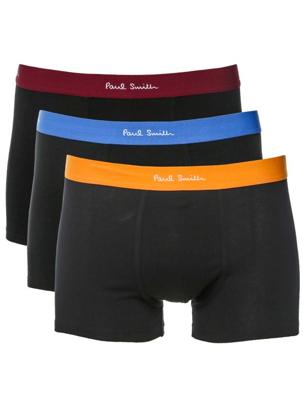 The Paul Smith boxer briefs 3 pack is a perfect blend of comfort, style, and sustainability. Crafted from organic cotton with added stretch, these boxer briefs offer a luxurious feel against the skin while ensuring a snug fit. The set includes three pairs, each featuring a classic plain black design with vibrant coloured waistbands that add a playful touch to the underwear collection.
