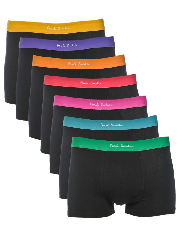The inclusion of classic plain black boxers caters to a timeless and understated aesthetic, while the addition of branded waistbands introduces a touch of sophistication. Adding a playful twist to the collection, the boxers showcase coloured waistbands adorned in the iconic 'Artist Stripe' hues, reflecting Paul Smith's signature design elements. To enhance the overall presentation, the premium underwear comes neatly packaged in a branded gift box, making them an ideal choice for those who appreciate both comfort and style.