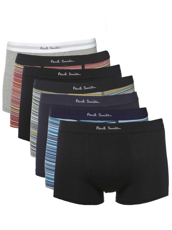 The Paul Smith trunks gift pack solves your weekly underwear choices in an instant! Engineered in a super soft stretch cotton, the set of seven boxer shorts comprise of four solid colours and three striped pairs, whilst the branded waistbands offer an authentic touch.