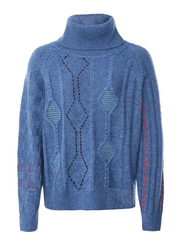 Cable Knit Patchwork Roll Neck Jumper