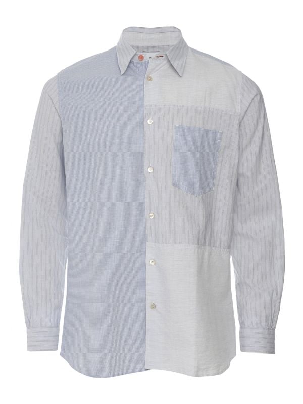 Showcase a playful nature this season with the PS by Paul Smith patchwork shirt. Tailored to a casual fit and crafted in a cotton and linen blend, the shirt is ideal for the summer months offering a comfortable silhouette and essential breathability. Featuring a sharp pointed collar, buttoned cuffs, French placket and patch pocket, whilst the cut-and-sew patchwork design lends super unique charm. The Paul Smith shirt is complete with dazzling iridescent mother-of-pearl buttons for a luxe finishing touch.