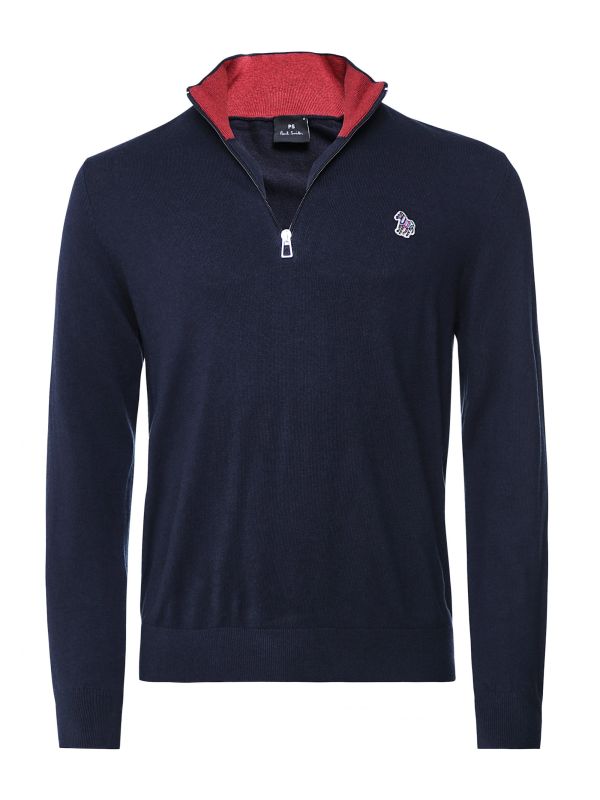 The Paul Smith half-zip Zebra sweater is a versatile cover-up suitable all year round. Lovingly knitted in premium cotton and wool blend yarn, the sweater offers a soft and lightweight handle - ideal to layer over shirting in the office. Featuring a funnel collar and half-zip fastening, ribbed trims and contrast inner collar offering a burst of colour, whilst the label's famous Zebra is embroidered to the chest in classic 'Sports Stripe' hues.