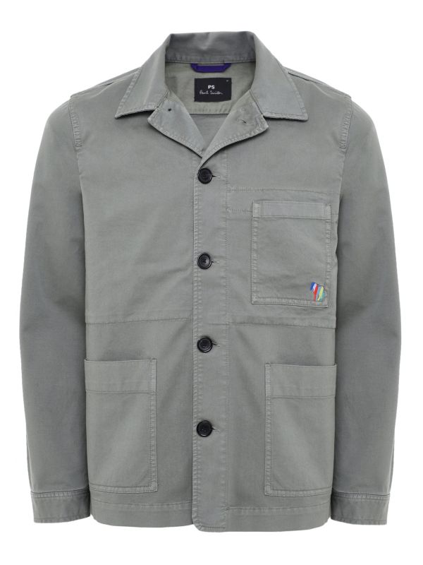 Introduce an on-trend workwear style into your casual attire with the Paul Smith chore jacket. Expertly engineered in an organic cotton rich stretch fabric, with a roomy cut providing a modern boxy silhouette. Featuring a pointed collar, button-through fastening and three pocket front, whilst the label's iconic Zebra is embroidered to the chest pocket.