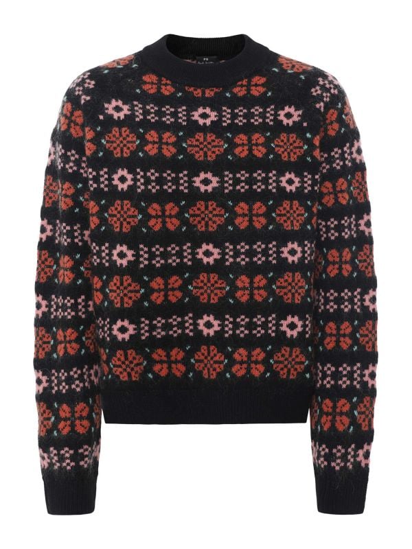The Paul Smith Crew Neck Fairisle Knitted Jumper showcases a distinctive pattern, offering a cheerful addition to your knitwear collection. Designed with a classic silhouette, it features ribbed trims at the cuffs, hem and neckline for a neat fit. Crafted for warmth with a cosy feel, the striking pattern and traditional crew neck cut make it an ideal option for layering throughout the season.