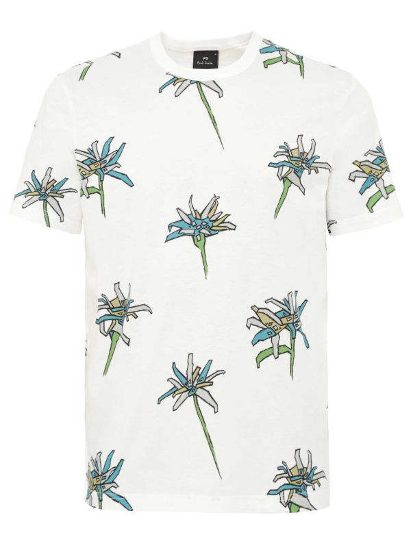 The Paul Smith flower t-shirt adds a bold twist to everyday style. Made from soft organic cotton jersey, it features a repeat flower print that brings personality to a simple silhouette.