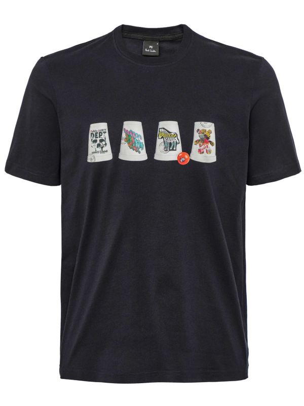 The classic crew neck and short sleeve design keep things simple, while the standout magic cups lineup graphic across the chest brings a playful edge that’s unmistakably Paul Smith. With a regular fit, the Paul Smith t-shirt is easy to throw on with jeans or shorts for a casual look that still makes a statement. Effortless, cool, and full of personality.