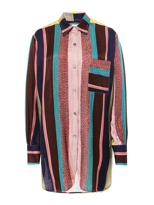 Add quirk to your wardrobe with the Paul Smith drape shirt. Crafted from a viscose and silk blend, the Paul Smith shirt boasts a patch pocket at the chest, an elegant point collar and is finished with a bold stripe pattern all over. Wear yours with smart pants for a sophisticated look.