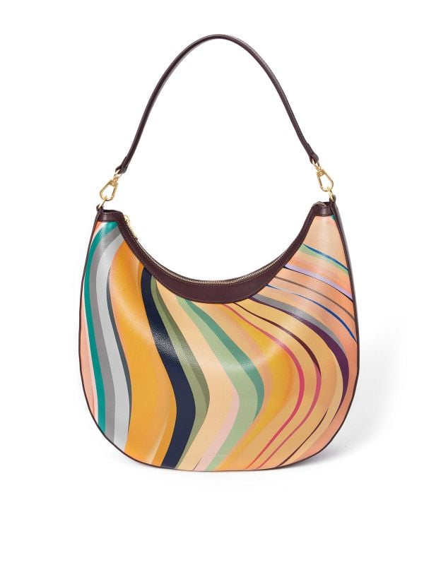 Crafted from premium leather, the Paul Smith Dusky Swirl hobo bag is an essential day-to-night bag. Medium-sized, this Paul Smith bag has a zip closure, leather shoulder strap, a main compartment and an interior slip pocket. It features the iconic and brightly coloured 'Swirl' print throughout, a signature detail of the brand.