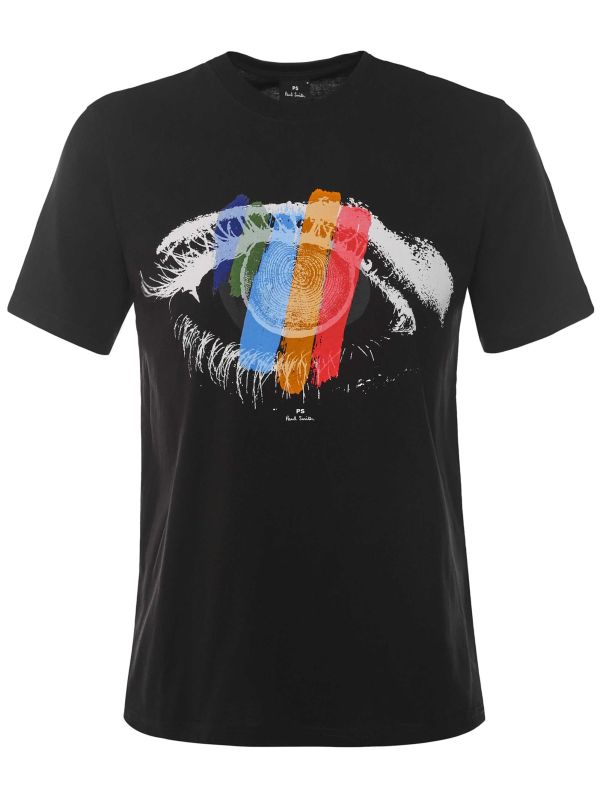 Add quirky PS appeal into your casual attire with the Paul Smith Eye t-shirt. Considerately crafted in premium organic cotton jersey, the tee offers a super soft handle. Featuring a traditional ribbed crew neck, whilst the playful 'Eye' print to the front showcases the designer's signature penchant towards unique artwork.