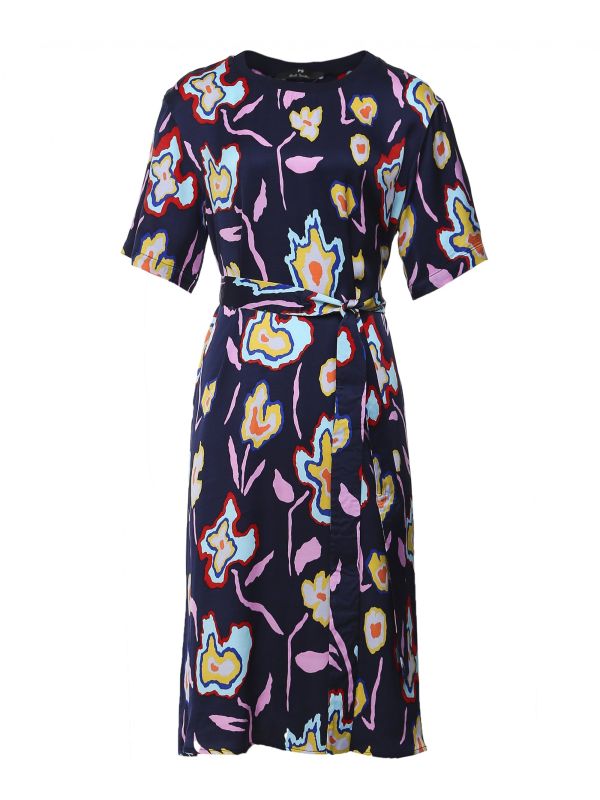 The Paul Smith floral print dress is a must for your spring/summer wardrobe. Boasting a multicoloured abstract floral print for a bold aesthetic, this elegant dress is sure to brighten up your everyday looks. It's crafted in a lightweight, fluid fabric and features a round neckline, short sleeves and removable tonal tie detail for a flattering cinched waist. Team with sneakers this season for an effortless off-duty ensemble.