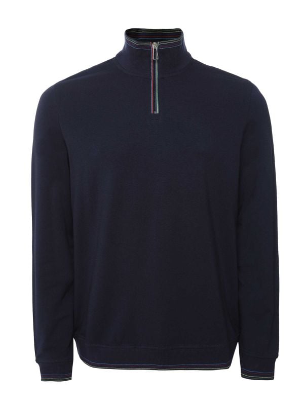 Step up your casual wardrobe with the Paul Smith Sports Stripe sweatshirt — crafted from a cotton-modal stretch blend for unbeatable softness, breathability, and all-day comfort. The funnel neck with half-zip closure adds versatility and modern flair, while ribbed trims ensure a clean, polished finish. Signature Sports Stripe trim and placket details inject that unmistakable Paul Smith energy that fans love, and the regular fit keeps it effortless and wearable for any occasion. If you’re ready to refresh your rotation with a standout piece that blends comfort, style, and premium quality, grab your Paul Smith sweatshirt now — stock is limited, and this is one you won’t want to miss.