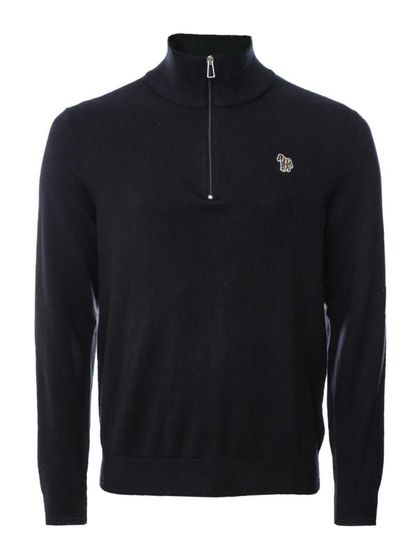 The funnel neck and half zip closure offer a modern, masculine silhouette, while the long sleeves and ribbed trims provide a secure, flattering fit. The embroidered Zebra adds a playful yet refined detail, showcasing Paul Smith’s signature style. Whether you’re dressing up or keeping it casual, this Paul Smith jumper is a versatile choice that brings a dash of personality to any outfit.