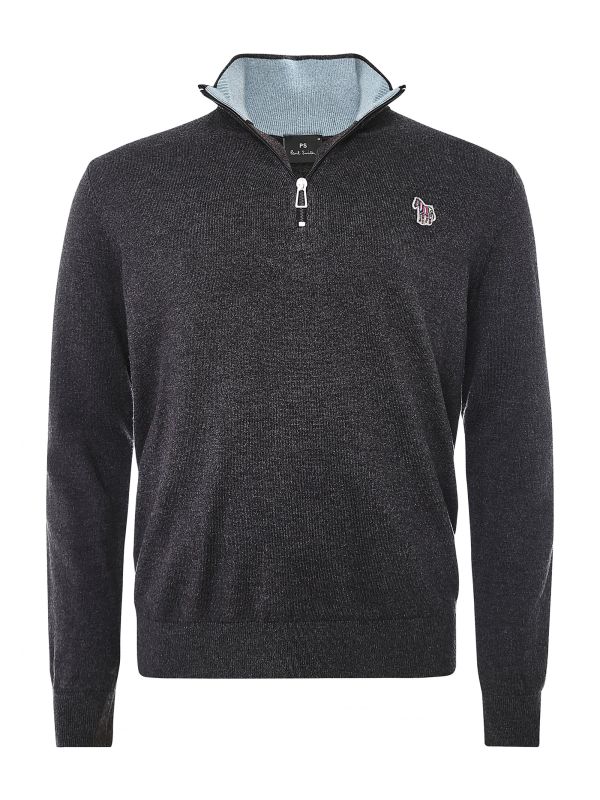 The PS by Paul Smith half-zip Zebra sweater is the ideal layering piece for shirting or tees. Engineered in a knitted cotton rich blend with wool, the sweater promises essential warmth and a super soft handle. Featuring a funnel neck with contrast inner, half-zip fastening and ribbed trims, whilst the brand's iconic Zebra is embroidered to the chest in vibrant 'Sports Stripe' colours.