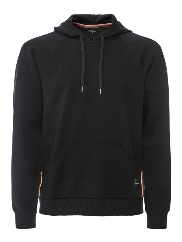 The Paul Smith Hayden Hoodie offers a pared-back silhouette with considered details. It features an adjustable hood with metal-tipped drawcords, a kangaroo pocket for easy storage and ribbed cuffs and hem for a secure fit. A signature multicolour side tape and a small logo patch at the pocket add brand character. Cut for relaxed layering, it balances practical features with subtle design cues, making it a reliable option for casual rotation or travel.