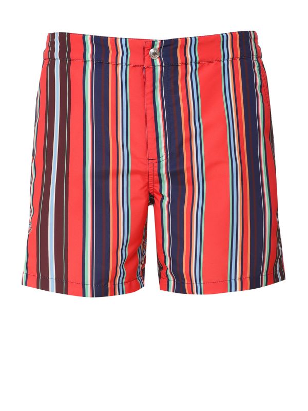 The Paul Smith Hayward Stripe swim shorts are an essential for your next vacation. Engineered in a quick-dry recycled fabric, the swim shorts are perfect for day-long beach wear. Featuring a button fastening with elasticated rear waist, side pockets and secure zip seat pocket, whilst the Hayward Stripe print lends signature PS style.