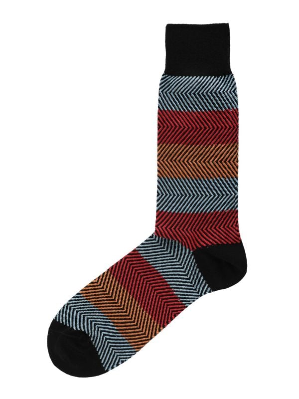 The ribbed ankle cuff ensures a secure and comfortable wear throughout the day, while the bold striped zigzag pattern injects a playful yet refined touch to your ensemble. Whether you’re dressing for work or play, the Paul Smith socks are a sharp choice to elevate your look with a subtle hint of individuality.