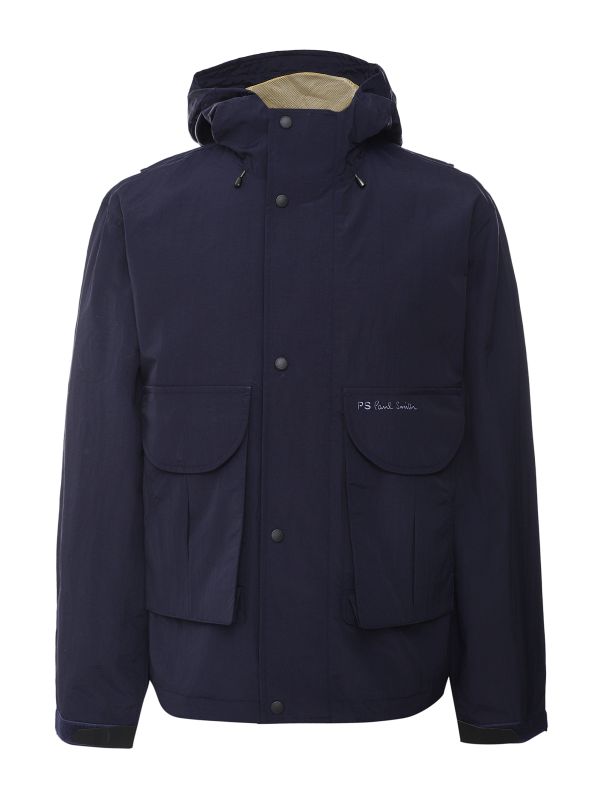 Choose the Paul Smith fishing jacket for a casual layer ideal for the transitional months. Engineered in recycled nylon, the anorak is equipped with an adjustable hood and breathable mesh lining making it perfect for unpredictable weather. Featuring a high neck with zip and stud fastening, adjustable Velcro cuffs and large pockets, with the embroidered logo lending iconic detail.