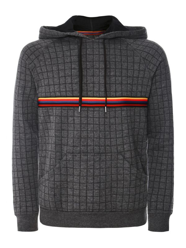 Indulge in pure luxury during downtime with the Paul Smith check hoodie. Engineered in a cotton rich jersey, the sweatshirt offers a super soft handle ensuring heightened comfort levels. Featuring a drawstring hood, classic kangaroo pocket and jacquard check pattern. The 'Artist Stripe' central tape trim adds a lively pop of colour synonymous with the British label.