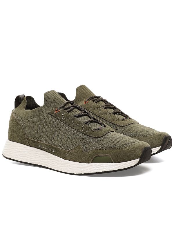 The Paul Smith Rock trainers draw inspiration from contemporary running shoes. Expertly designed with a partially knitted upper, the sneakers are super lightweight and comfortable. Featuring a lace-up fastening, suede trim and contrast rubber soles, whilst the reflective heel tab provides visibility in low light conditions.