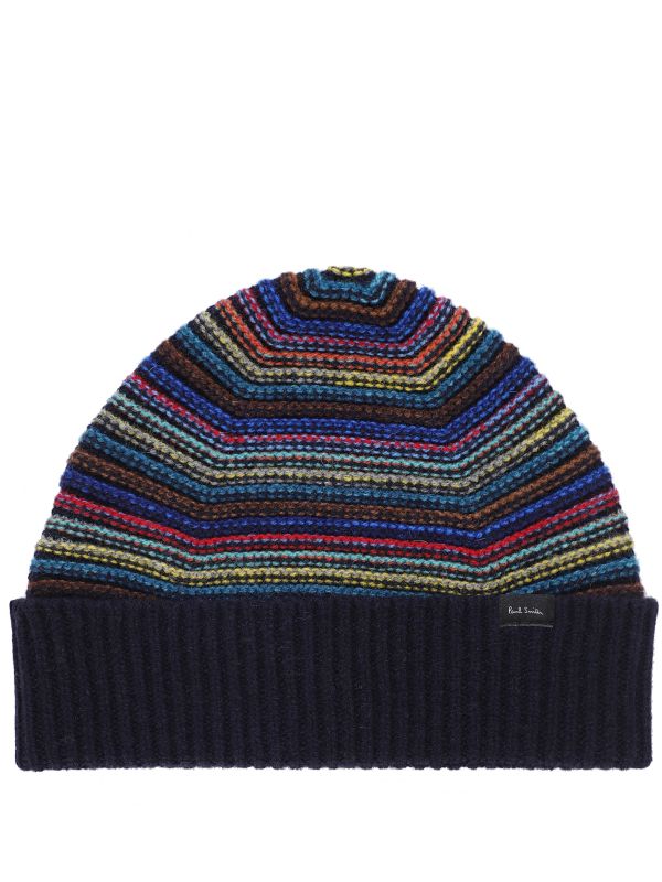 The Paul Smith striped beanie will add a lively pop of colour into your winter accessories. Lovingly knitted in Scotland from premium lambswool in a fine ribbed texture, the hat promises a super soft handle and essential warmth. Featuring a classic fold up brim, the Paul Smith hat showcases a charming mixed stripe pattern synonymous with the British label's designs.