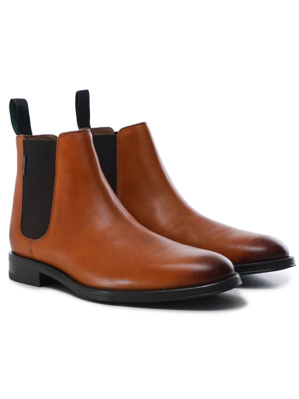 The Paul Smith Augustus Chelsea boots put a playful twist on a timeless classic. Crafted from smooth leather uppers, they feature elasticated side gores for easy pull-on wear and a branded grosgrain ankle loop for a subtle signature touch.