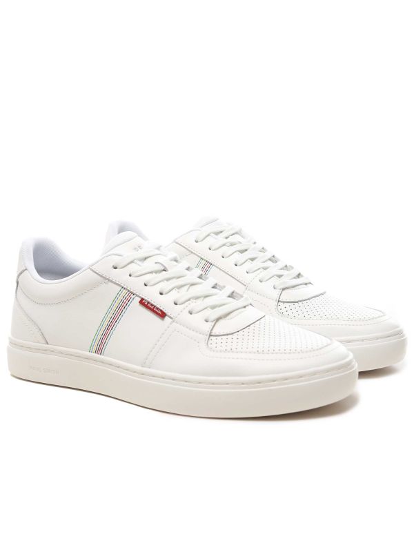 The Paul Smith Margate sneakers are a versatile option perfect for casual days in the office. Expertly engineered with premium leather uppers, the white sneakers showcase a modern sporty appearance. Featuring a lace-up fastening, perforated toe and rubber cupsoles, whilst the cushioned footbed will make every step comfortable. The Paul Smith sneakers are complete with the label's 'Sports Stripe' trim for iconic detail.