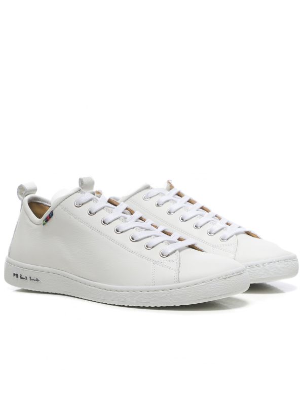 Upgrade your sneaker repertoire with the PS by Paul Smith Miyata sneakers. Expertly crafted with premium calf leather uppers, the white sneakers offer a smooth finish and minimalist appearance. Featuring a lace-up fastening, branded tongue and ankle pull loop, whilst the rubber cupsoles are adorned with a Paul Smith signature for authentic appeal. The Paul Smith sneakers are complete with the label's 'Sports Stripe' webbing tab offering an iconic finishing touch.