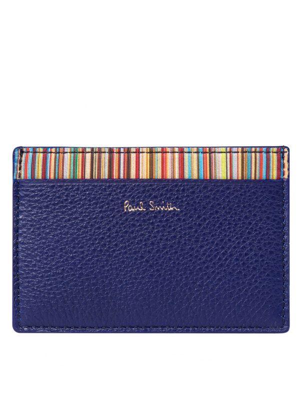 Elevate your everyday essentials with the Paul Smith Signature Stripe trim card holder. Expertly crafted in Italy from textured pebbled leather, the card case offers fantastic practicality with its slimline design, three card slots and central compartment for notes. Complete with the label's 'Signature Stripe' trim and silver foil logo, the wallet showcases true Paul Smith individuality.