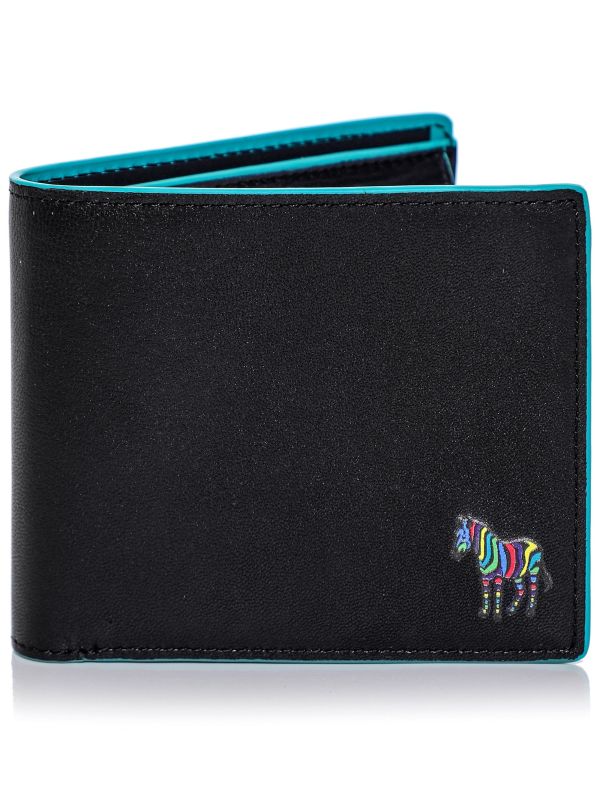 Upgrade your essential accessories with the PS by Paul Smith Zebra coin wallet. Expertly crafted in soft calf leather, the black wallet offers a premium appearance. Featuring three card slots, two slip pockets, a main note compartment and press stud coin pocket - meaning there is ample space to store your credit cards and cash. The Paul Smith wallet is complete with turquoise leather trim throughout, whilst the 'Sports Stripe' Zebra to the front adds iconic appeal.