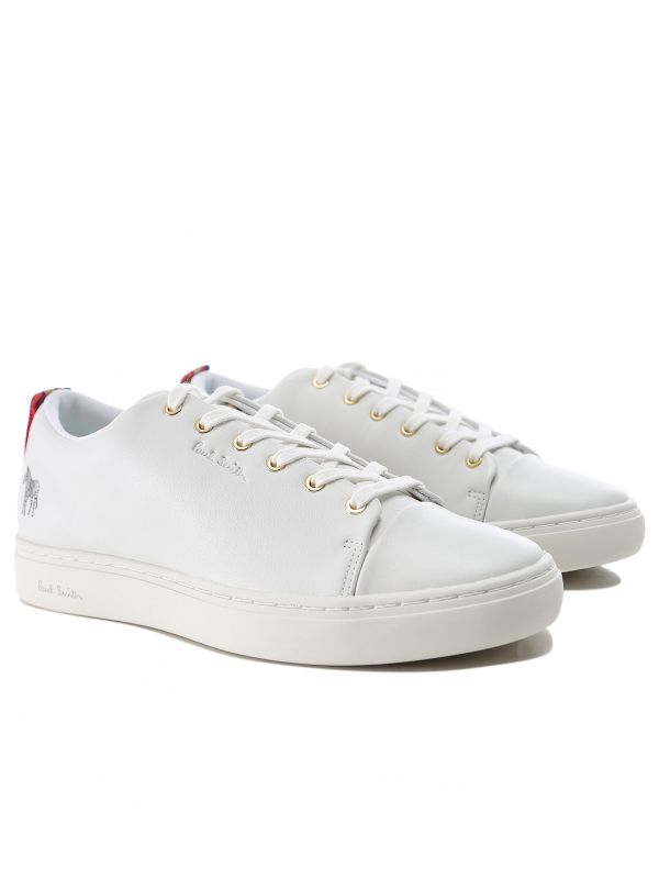 Expertly crafted in leather, the Paul Smith Lee sneakers are a timeless option for off-duty styling. These classic white sneakers feature a lace up fastening, white rubber cupsoles and gold eyelets. They're complete with a Zebra logo, embossed branding and iconic stripe webbing heel trims for an authentic finish.