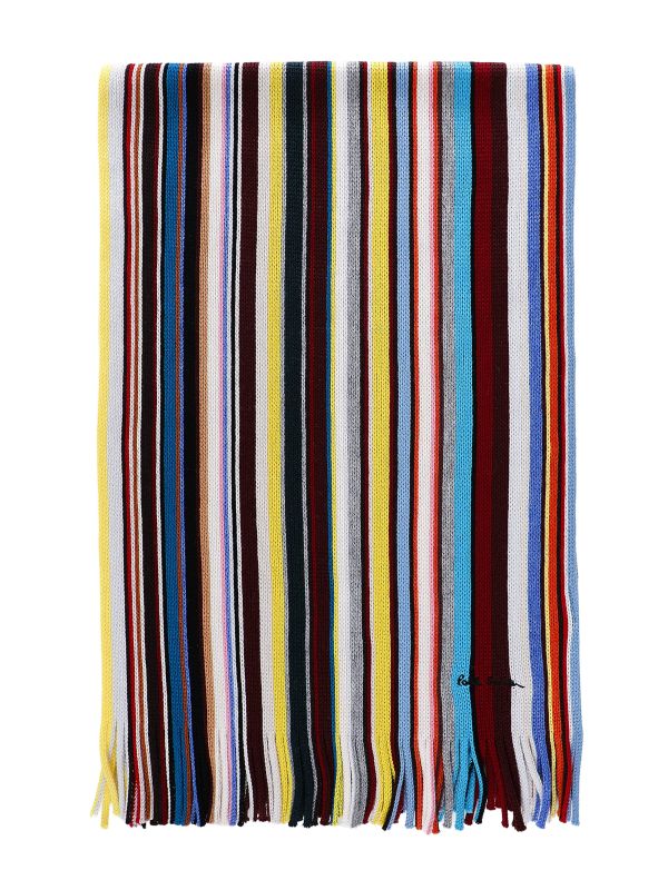 The Paul Smith Signature Stripe scarf is a vibrant, stylish accessory crafted from soft merino wool for warmth and comfort. Featuring the brand’s iconic Signature Stripe pattern, it adds a bold yet refined pop of colour to any outfit. Tasselled edges give a relaxed, contemporary touch, while a subtle embroidered logo completes the look with understated detail. Perfect for layering over coats or jackets, this Paul Smith scarf effortlessly elevates everyday winter style.